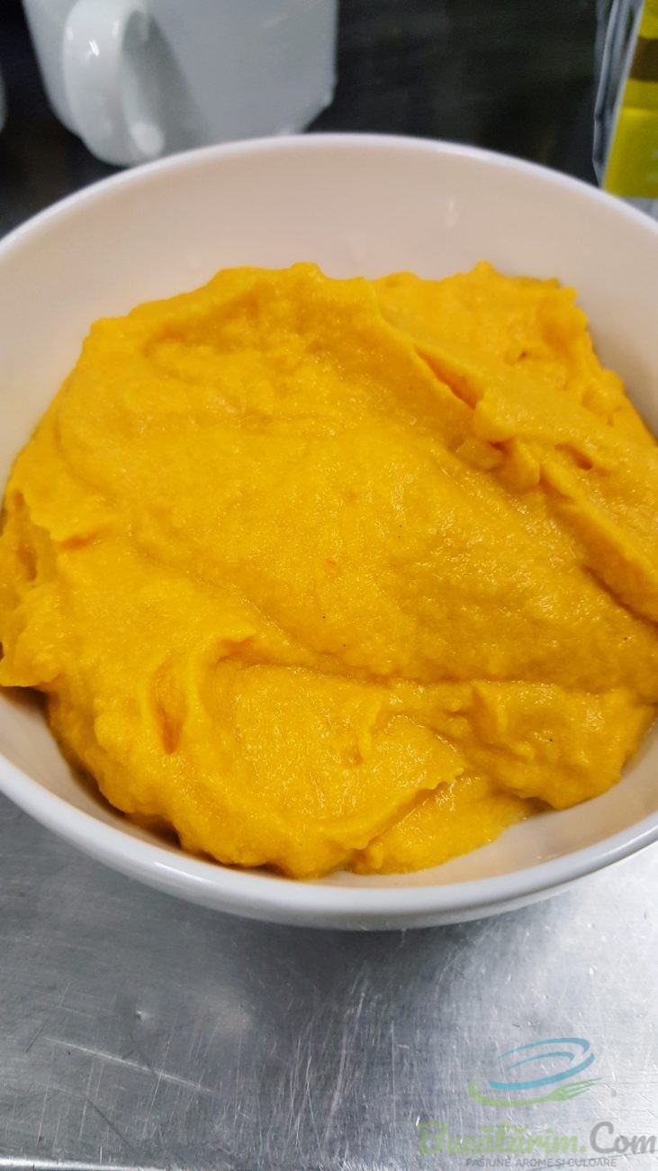 Morcovii se curăță și se pun la fiert pe abur. De preferat ar fi să folosiți morcovii mici și cât mai tineri, dar sunt la fel de gustoși și cei maturi. Răsturnați-i într-un vas și blenduiți-i până devin foarte fini, adăugați sare după gust, untul și amestecați pentru a se încorpora untul. Presărați pentru aromă un vârf mic de nucșoară, puțin cimbru praf și piper alb.