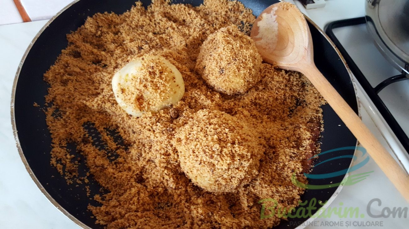 Pesmetul: Într-o tigaie topiți uleiul de cocos fără să se ardă. Adăugați pesmetul și îl rumeniți ușor amestecând continuu în tigaie să fie uniform prăjit. În momentul când a prins o culoare aurie se oprește focul și adăugați scorțișoara, zahărul vanilat și cel brun, amestecați să se dizolve bine. Eu am folosit un zahăr brun lipicios care are un gust intens și duce ușor către melasă. Fiecare gălușcă se tăvălește prin pesmet și vor căpăta un gust intens de arome dulci. Sunt moi, delicioase și perfecte pentru copii și pentru bătrâni. Poftă bună să aveți!